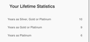 If you scroll down to the bottom, you'll see numbers for how many years you've held each status level. This can help you in determining how quickly you can earn the next level.
