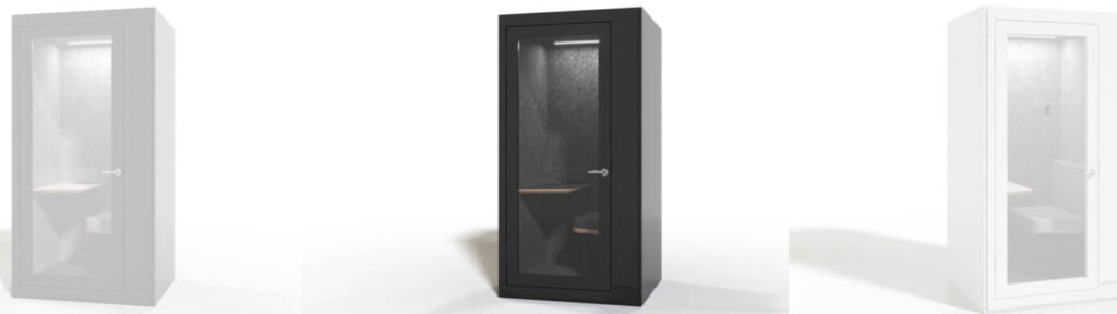 Jabbrrbox (“jabberbox” is slang for a telephone) is a fully functioning workstation with integrated Wi-Fi, cameras, mic and speakers, and USB charging for digital workers. The telephone-box-style room also has A/C and ventilation, mood lighting, and (perhaps best of all) complete soundproofing from the outside environment. The door locks for security but is clear glass, so it's not 100% private.