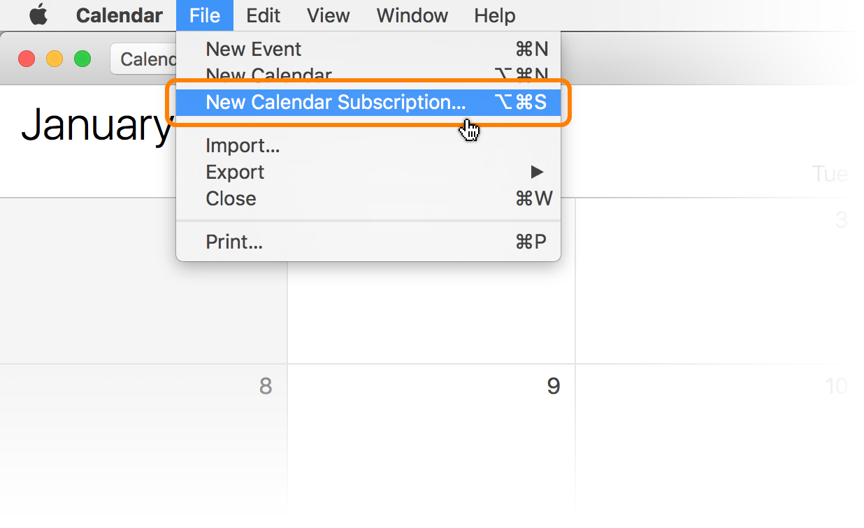 - Click File -> New Calendar Subscription: