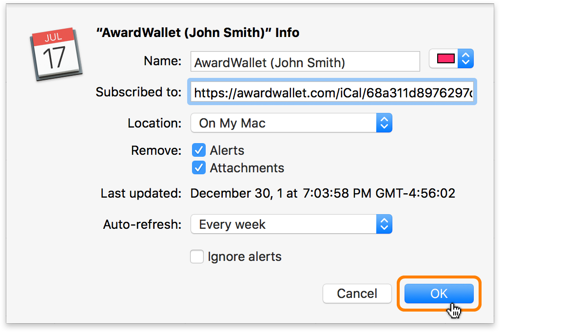 Yes! You can automatically import your AwardWallet timeline as a separate calendar that will show up alongside your calendar. For that, you simply need to grab your iCal link and add it to your calendar as an additional calendar you wish to view. For more details check out this tip: