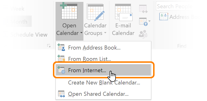 - In the top menu bar click "Open Calendar" -> "From Internet":