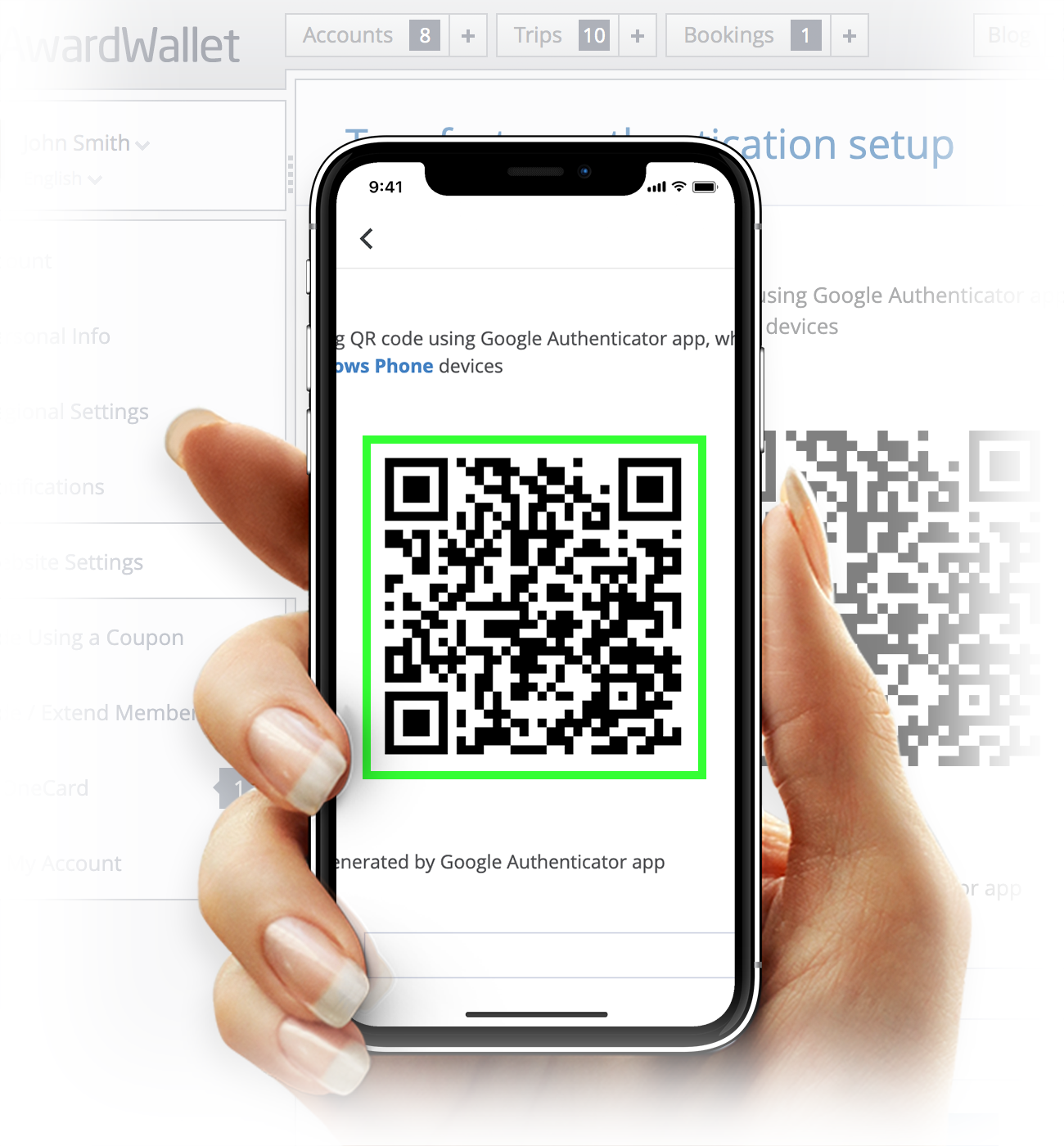 Then you enter the code generated by the app into AwardWallet and you are done. For more details please check out this tip: